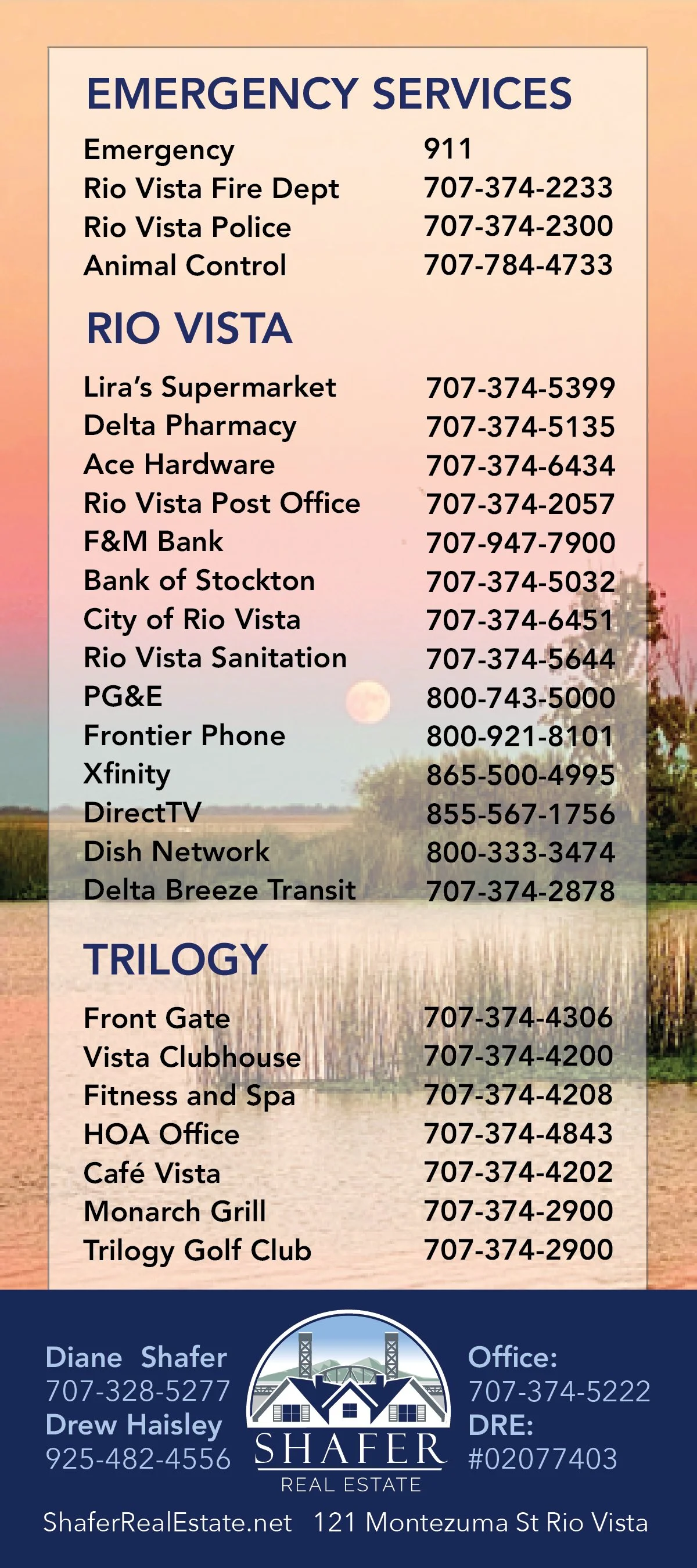 Useful Phone Numbers in Trilogy & Rio Vista